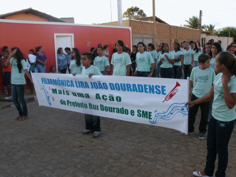 No final do mês de março de 2010, procurei a Secretaria de Educação do município de João Dourado, e apresentei um projeto para a criação e fundação de uma filarmônica no município. Fui atendido pela secretária Sra. Leci Ribeiro, que acreditou na proposta e a apresentou ao excelentíssimo prefeito Sr. Rui Dourado, e juntos me contrataram para fundar a filarmônica, um sonho antigo do município. Passados 10 dias, exatamente em 07/04/2010 começaram as aulas teóricas com 169 alunos, divididos em 5 turmas por dia, dois dias por semana. Confesso que fiquei preocupado com o bom andamento do curso, devido ao grande número de alunos. O curso foi planejado para um período de 6 meses de aulas teóricas, que no decorrer dessas alguns alunos foram desistindo por motivos diversos, restando no final dos 6 meses 60 alunos preparados, capacitados e prontos para a segunda etapa do curso. Etapa esta planejada para 3 meses de aulas práticas, tempo necessário para que os alunos adquiram embocadura, afinação e desenvolvimento da agilidade necessária para tocar o instrumento destinado a cada um desses alunos "etapa em andamento até fevereiro de 2011". Assim que forem rompidas as dificuldades de domínio dos instrumentos, os alunos se tornarão músicos e começaremos a ensaiar o repertório para a 1ª apresentação, prevista para Abril de 2011.